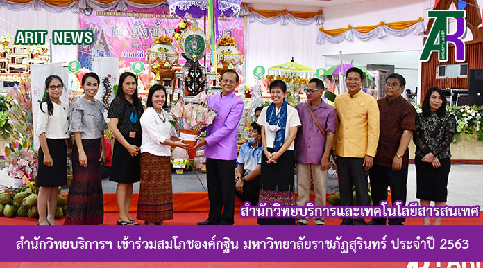 วันที่ 16 ตุลาคม 2563 เวลา 13.00 น. ผู้ช่วยศาสตราจารย์ ดร.นิศานาถ แก้ววินัด รองผู้อำนวยการสำนักวิทยบริการและเทคโนโลยีสารสนเทศ นำบุคลากรสำนักวิทยบริการฯ ร่วมสมโภชองค์กฐิน มหาวิทยาลัยราชภัฏสุรินทร์ ประจำปี 2563 ในการนี้ผู้บริหารและบุคลากรมหาวิทยาลัยราชภัฏสุรินทร์เข้าร่วมองค์กฐินอย่างพร้อมเพรียงกัน โดยจะนำไปทอดในวันที่ 17 ตุลาคม 2563 ณ วัดบ้านซองแมว ตำบลบัวโคก อำเภอท่าตูม จังหวัดสุรินทร์