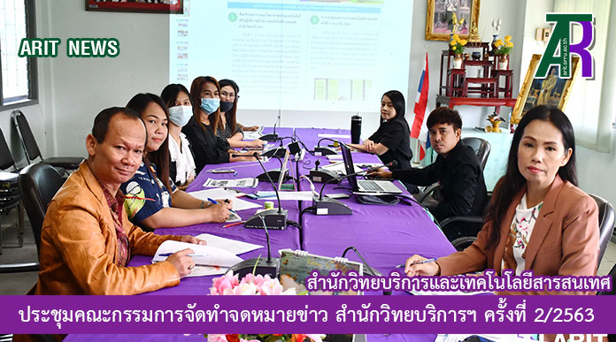 วันที่ 30 ตุลาคม 2561 เวลา 09.00 น. ผู้ช่วยศาสตราจารย์สังวาลย์ ตุกพิมาย รองผู้อำนวยการสำนักวิทยบริการและเทคโนโลยีสารสนเทศ ฝ่ายวิทยบริการ เป็นประธานในการประชุมคณะกรรมการจัดทำจดหมายข่าว สำนักวิทยบริการฯ ครั้งที่ 2/2563 ณ ห้องประชุม ชั้น 4 อาคารสำนักวิทยบริการฯ เพื่อหาแนวทางการจัดทำจดหมายข่าว และพิจารณา (ร่าง) จดหมายข่าว ฉบับที่ 58 ประจำเดือนตุลาคม 2563