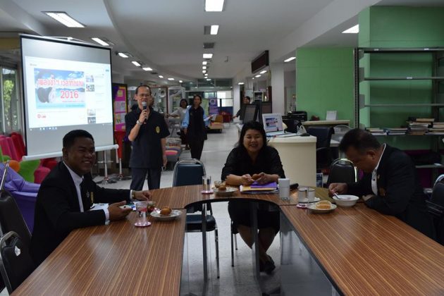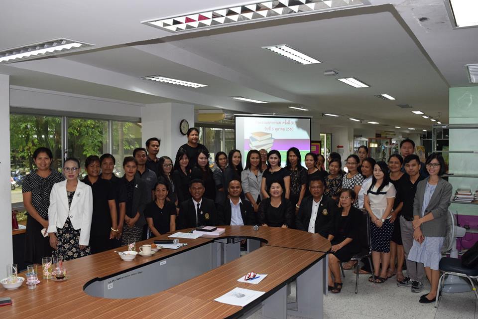 วันที่ 5 ตุลาคม 2560 สำนักวิทยบริการและเทคโนโลยีสารสนเทศ ได้จัดสภากาแฟ ครั้งที่ 3/2560 เพื่อเปิดโอกาสให้ผู้บริหารและบุคลากร ได้พบปะ พูดคุยและแลกเปลี่ยนความคิดเห็นเกี่ยวกับแนวทางการปฏิบัติงานและสรุปการศึกษาดูงานตามโครงการพัฒนาบุคลากรสำนักวิทยบริการฯ โดยมี ผู้ช่วยศาสตราจารย์ ดร.สันทนา กูลรัตน์ ผู้อำนวยการสำนักวิทยบริการและเทคโนโลยีสารสนเทศ เป็นประธานในการเปิดงานสภากาแฟ และมีรองผู้อำนวยการสำนักวิทยบริการฯ และบุคลากรสำนักวิทยบริการฯ เข้าร่วมงานสภากาแฟในครั้งนี้อย่างพร้อมเพรียงกัน (ฝ่ายห้องสมุด เป็นเจ้าภาพในการจัดสภากาแฟ)
