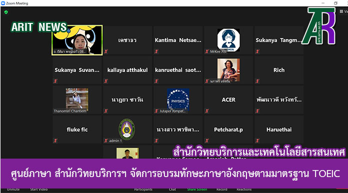 วันที่ 16 มกราคม 2564 ศูนย์ภาษา สำนักวิทยบริการและเทคโนโลยีสารสนเทศ จัดการอบรมทักษะภาษาอังกฤษตามมาตรฐาน TOEIC โดย ผู้ช่วยศาสตราจารย์ ดร.สันทนา กูลรัตน์ ผู้อำนวยการสำนักวิทยบริการและเทคโนโลยีสารสนเทศ เป็นประธานในการเปิดโครงการ ซึ่งการอบรมทักษะภาษาอังกฤษตามมาตรฐาน TOEIC อยู่ภายใต้โครงการพัฒนาทักษะทางภาษาสำหรับนักศึกษาและบุคลากร จำนวน 36 ชั่วโมง ระหว่างวันเสาร์ – วันอาทิตย์อาทิตย์ ที่ 16-31 มกราคม 2564 โดยครั้งนี้เป็นการอบรมแบบออนไลน์ผ่านโปรแกรม Zoom เนื่องจากสถานการณ์ระบาดระลอกใหม่ของไวรัสโคโรนา-2019 เนื้อหาการอบรมในแต่ละวันเป็นการให้ความรู้ในแต่ละส่วนของข้อสอบ TOEIC ซึ่งมีทั้งหมด 7 ส่วน (7 Parts) สำหรับวันเสาร์ที่ 16 มกราคม 2564 นี้ เป็นเนื้อหาของ Part 5 – Incomplete Sentences โดย อาจารย์ธีติมา พจนะแก้ว เป็นวิทยากรในการอบรม