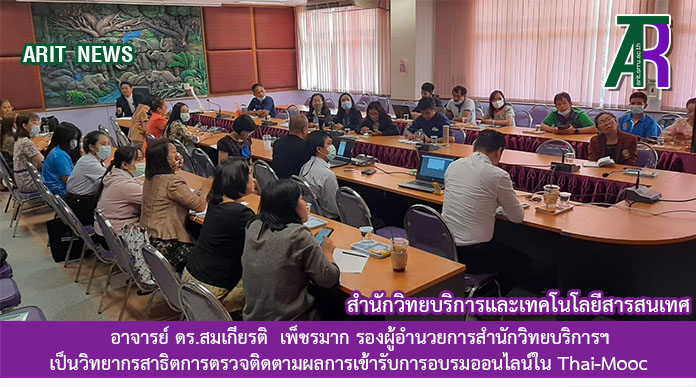วันที่ 17 กุมภาพันธ์ 2564 เวลา 13.30 น. อาจารย์ ดร.สมเกียรติ เพ็ชรมาก รองผู้อำนวยการสำนักวิทยบริการฯ ฝ่ายเทคโนโลยีสารสนเทศ เป็นวิทยากรสาธิตการตรวจติดตามผลการเข้ารับการอบรมออนไลน์ใน Thai-Mooc และการส่งหลักฐานการอบรมของผู้รับจ้างเหมาบริการโครงการยกระดับเศรษฐกิจและสังคมรายตำบลแบบบูรณาการ (1 ตำบล 1 มหาวิทยาลัย) ด้วย u2t.srru.ac.th Platform Moodle ณ ห้องประชุมช้างแดง ชั้น 3 คณะครุศาสตร์ มหาวิทยาลัยราชภัฏสุรินทร์