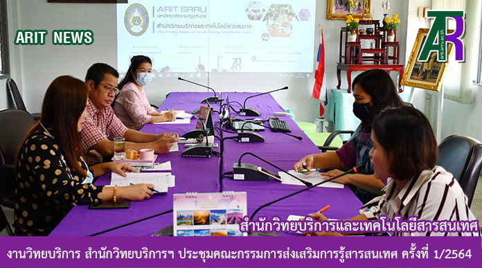 วันที่ 24 มีนาคม 2564 เวลา 09.30 น. งานวิทยบริการ สำนักวิทยบริการและเทคโนโลยีสารสนเทศ ประชุมคณะกรรมการส่งเสริมการรู้สารสนเทศ ครั้งที่ 1/2564 ดำเนินการประชุมโดย นางพัชรี จุลหงษ์ หัวหน้างานวิทยบริการ ในการนี้ได้มีอาจารย์คณะเกษตรและเทคโนโลยีการเกษตร และอาจารย์จากคณะวิทยาศาสตร์และเทคโนโลยีเข้าร่วมประชุม เพื่อพิจารณาเรื่องสิ่งสนับสนุนการเรียนการสอนในรายวิชาการศึกษาทั่วไป และแนะนำฐานข้อมูลอิเล็กทรอนิกส์ ประจำปีงบประมาณ 2564