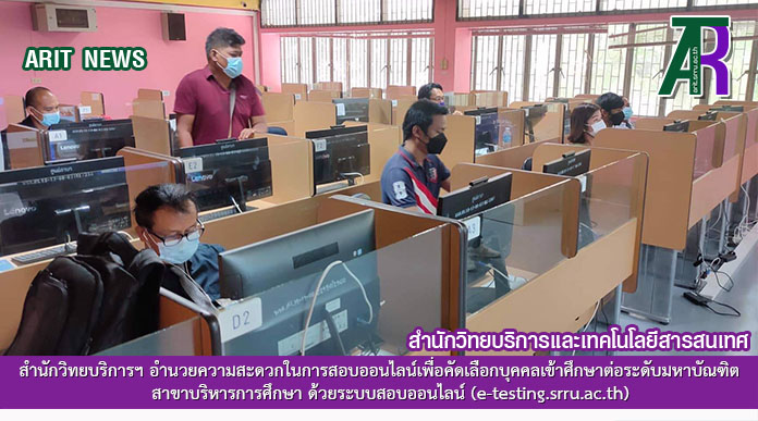 วันที่ 29-30 พฤษภาคม 2564 งานเทคโนโลยีสารสนเทศ สำนักวิทยบริการเเละเทคโนโลยีสารสนเทศอำนวยความสะดวกในการสอบออนไลน์เพื่อคัดเลือกบุคคลเข้าศึกษาต่อระดับมหาบัณฑิต สาขาบริหารการศึกษา ด้วยระบบสอบออนไลน์ (e-testing.srru.ac.th) เเละสัมภาษณ์ด้วยโปรแกรม Zoom โดยมีผู้เข้าสอบทั้งสิ้น 145 คน