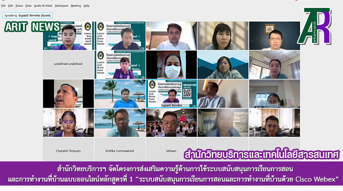 วันที่ 4 มิถุนายน 2564 เวลา 09.30 น. ผู้ช่วยศาสตราจารย์สันทนา กูลรัตน์ รักษาราชการแทนผู้อำนวยการสำนักวิทยบริการและเทคโนโลยีสารสนเทศ เป็นประธานเปิดการอบรมออนไลน์การส่งเสริมความรู้ด้านการใช้ระบบสนับสนุนการเรียนการสอนและการทำงานที่บ้านแบบออนไลน์หลักสูตรที่ 1 “ระบบสนับสนุนการเรียนการสอนและการทำงาน ที่บ้านด้วย Cisco Webex” เนื้อหาในการอบรมประกอบด้วย การใช้งานโปรแกรม Cisco Webex Meeting เป็นเครืองมือประชุมออนไลน์ และห้องเรียนเสมือน โดยโปรแกรม Cisco Webex Meeting สามารถจัดประชุมพร้อมกันสูงสุด 1,000 คน โดยไม่จำกัดเวลา ในการนี้ บุคลากร และนักศึกษาสามารถรับชมวีดีโอย้อนหลังได้ที่ https://www.srru.ac.th/news/635