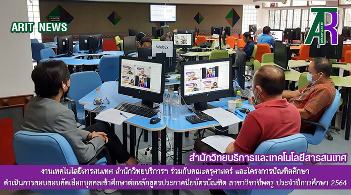 วันที่ 12 – 13 มิถุนายน 2564 เวลา 08.30 – 16.30 น. งานเทคโนโลยีสารสนเทศ สำนักวิทยบริการฯ ร่วมกับคณะครุศาสตร์ และโครงการบัณฑิตศึกษา ดำเนินการสอบสอบคัดเลือกบุคคลเข้าศึกษาต่อหลักสูตรประกาศนียบัตรบัณฑิต สาขาวิชาชีพครู มหาวิทยาลัยราชภัฏสุรินทร์ ประจำปีการศึกษา 2564 ด้วยระบบจัดสอบออนไลน์ e-testing.srru.ac.th และควบคุมการสอบด้วยโปรแกรม Cisco Webex ในการสอบครั้งนี้ มีผู้เข้าสอบทั้งสิ้น 420 คน โดยสอบข้อเขียนวิชาความรู้ความสามารถทั่วไป และวิชาวัดความเป็นครูในวันที่ 12 มิถุนายน 256 และสอบสัมภาษณ์ในวันที่ 13 มิถุนายน 2564