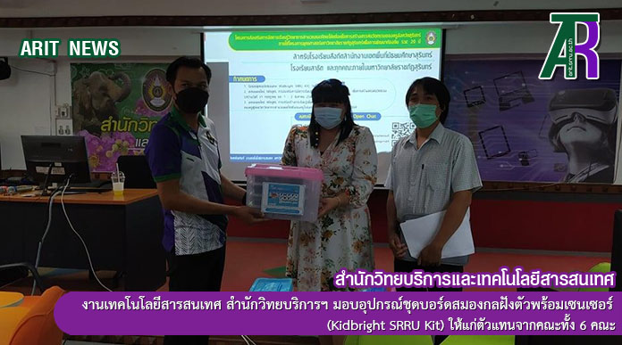 วันที่ 7 กรกฎาคม 2564 เวลา 13.30 น. ณ ห้องปฏิบัติการคอมพิวเตอร์ 28203 ชั้น 2 อาคาร 28 นายสุภาษิต เติมกล้า หัวหน้างานเทคโนโลยีสารสนเทศ มอบอุปกรณ์ชุดบอร์ดสมองกลฝังตัวพร้อมเซนเซอร์ (Kidbright SRRU Kit) ให้เเก่ตัวเเทนจากคณะทั้ง 6 คณะ เเละโรงเรียนสาธิตมหาวิทยาลัยราชภัฏสุรินทร์ คณะ/โรงเรียนละ 5 ชุด เพื่อให้นักศึกษา อาจารย์ และบุคลากรทดลองใช้งานก่อนเข้าร่วมกิจกรรมอบรมเชิงปฏิบัติการออนไลน์ หลักสูตร “การส่งเสริมการจัดการเรียนรู้วิทยาการคำนวณและทักษะโค้ดดิ้งเพื่อการสร้างสรรค์นวัตกรรม” ระหว่างวันที่ 31 กรกฎาคม – 2 สิงหาคม 2564 ในรูปแบบออนไลน์