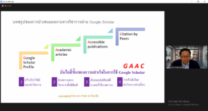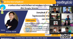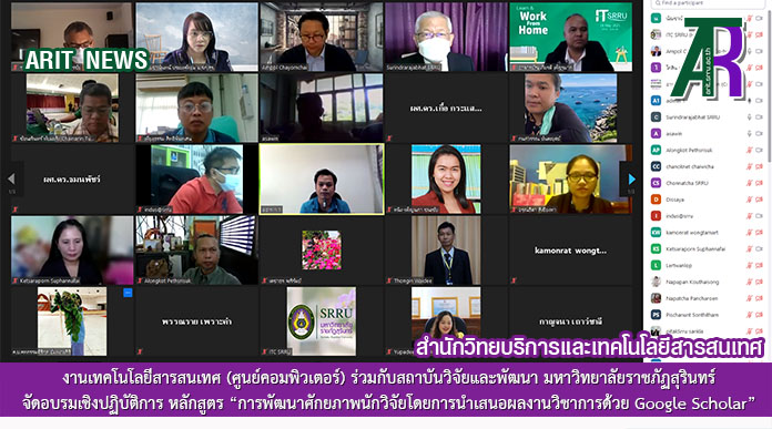 วันที่ 15 กรกฎาคม 2564 เวลา 09.20 น. รองศาสตราจารย์พงษ์ชาญ ณ ลำปาง รองอธิการบดี ฝ่ายวางแผน วิจัย และวิเทศสัมพันธ์ เป็นประธานพิธีเปิดการอบรมเชิงปฏิบัติการในรูปแบบออนไลน์ หลักสูตร “การพัฒนาศักยภาพนักวิจัยโดยการนำเสนอผลงานวิชาการด้วย Google Scholar” การอบรมครั้งนี้ได้รับเกียรติจากอาจารย์ ดร.อำพล ชะโยมชัย รองคณบดีฝ่ายวิจัยและพัฒนา คณะวิทยาการจัดการ มหาวิทยาลัยราชภัฏเพชรบูรณ์ เป็นวิทยากรบรรยาย โดยได้รับความสนใจจากอาจารย์ บุคลากร และนักศึกษามหาวิทยาลัยราชภัฏสุรินทร์เข้าร่วมอบรมทั้งสิ้น 70 คน มีวัตถุประสงค์เพื่อสร้างข้อมูลนักวิจัย (Profile) สำหรับการนำเสนอผลงานวิจัยและติดตามผลการอ้างอิงผลงาน ซึ่งมีผลโดยตรงต่อการประเมินเว็บไซต์ Webometrics ตัวชี้วัดด้านจำนวนบทความวิชาการที่ถูกสืบค้นด้วย Google Scholar ของมหาวิทยาลัยราชภัฏสุรินทร์