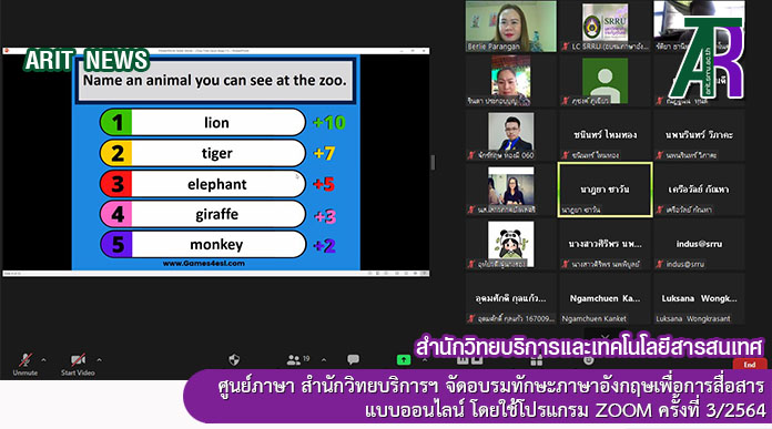 วันที่ 11 สิงหาคม 2564 ศูนย์ภาษา สำนักวิทยบริการและเทคโนโลยีสารสนเทศ จัดอบรมทักษะภาษาอังกฤษเพื่อการสื่อสาร แบบออนไลน์ โดยใช้โปรแกรม ZOOM ครั้งที่ 3/2564 โดย ผู้ช่วยศาสตราจารย์สันทนา กูลรัตน์ ผู้อำนวยการสำนักวิทยบริการฯ เป็นประธานในการเปิดการอบรม ซึ่งการอบรมจะจัดอบรมระหว่างวันที่ 11 สิงหาคม 2564 และ วันที่ 18 สิงหาคม 2564 วิทยากรโดย อาจารย์ญาณิศา สู่ทรงดี และอาจารย์ Berlie Parangan